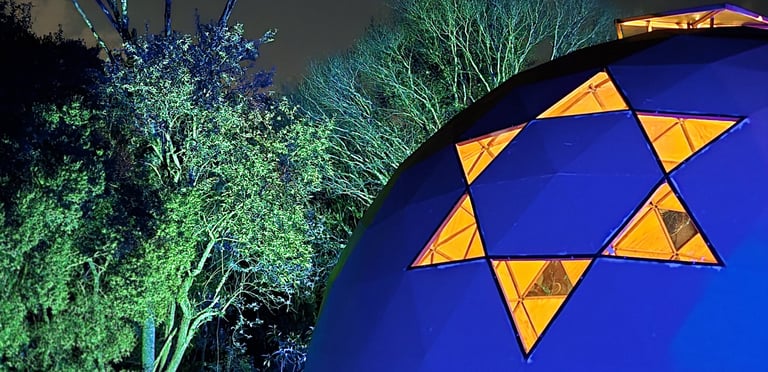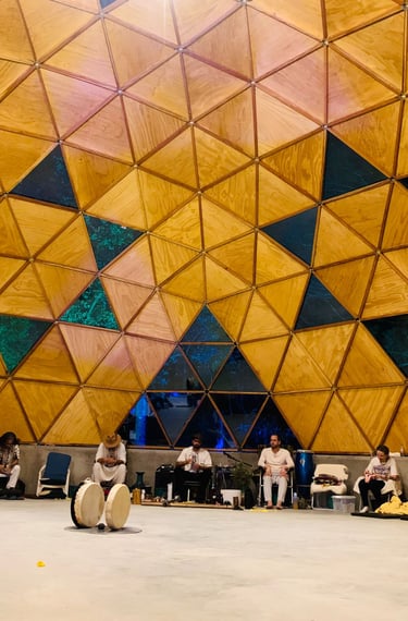 O domo é um espaço único, especialmente propício para cerimônias, pois sua forma potencializa a reverberação acústica e as frequências sonoras, criando a sensação de estar dentro de um grande instrumento musical em ressonância.