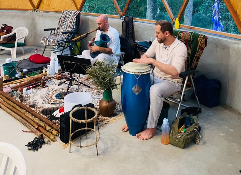 A Cerimônia Xamânica utiliza o elemento sagrado do fogo durante toda a cerimônia, conduzindo uma jornada que integra momentos de meditação profunda e expansão da consciência.